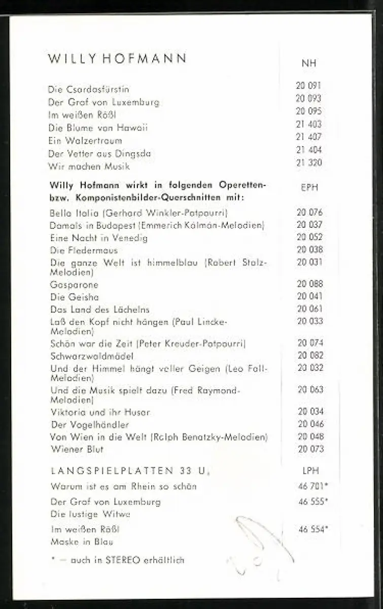 AK Musiker Willy Hofmann im Porträt, Autograph