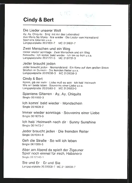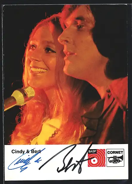 AK Musiker des Duos Cindy & Bert während eines Liedes am Mikrofon, mit Autograph