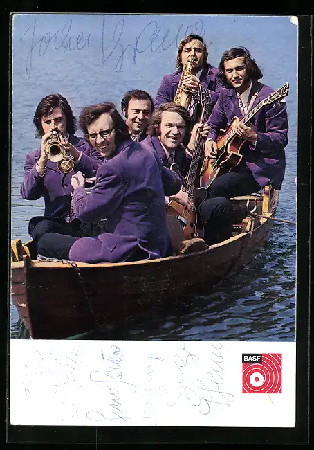AK Musiker des Jochen Brauer Sextett mit Instrumenten, Autogramme