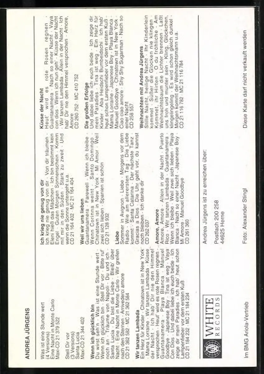 AK Musikerin Andrea Jürgens in die Kamera blickend, Autograph