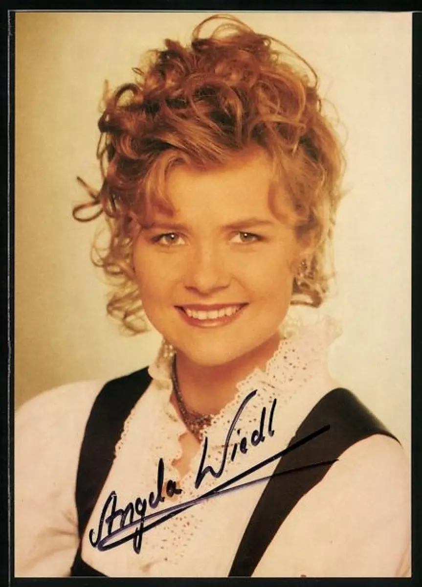 AK Musikerin Angela Wiedl lächelnd im Porträt, Autograph