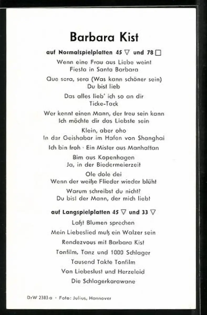 AK Musikerin Barbara Kist seitlich in die Kamera schauend, Autograph