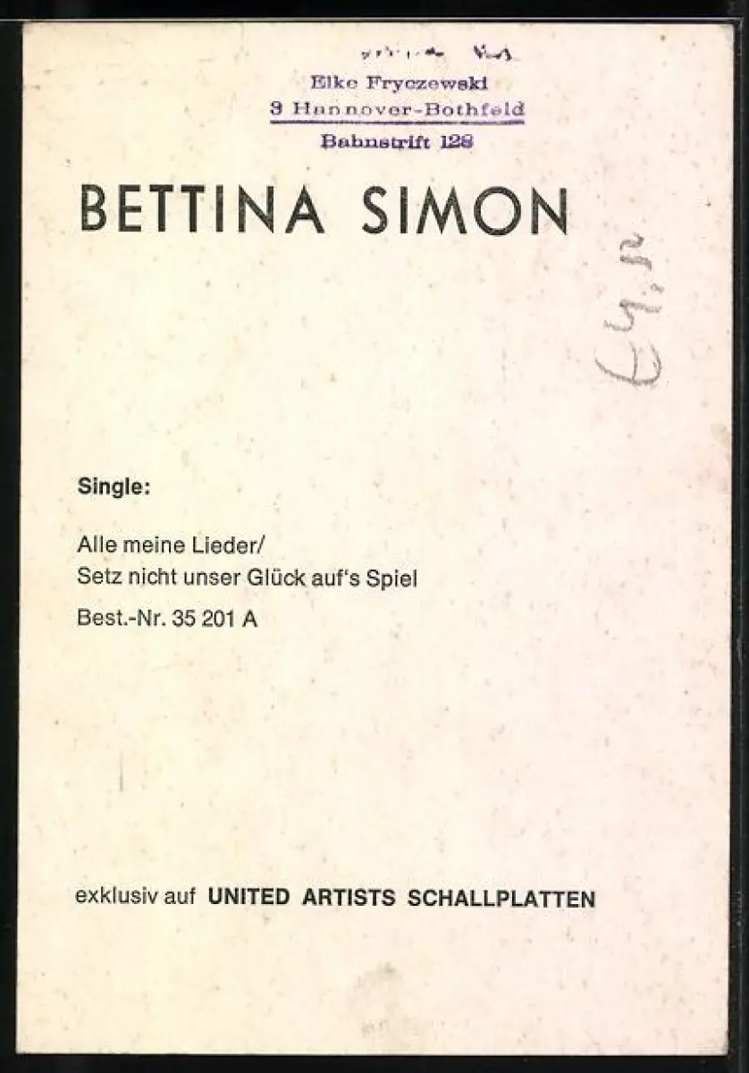 AK Musikerin Bettina Simon mit reizendem Lächeln, Autograph