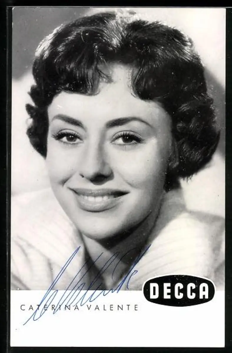 AK Musikerin Caterina Valente lächelnd im Porträt, Autograph