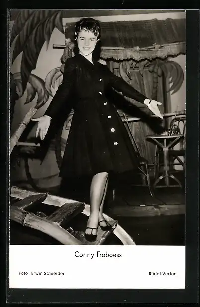 AK Musikerin Conny Froboess im schwarzen Kleid