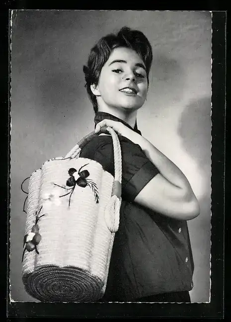AK Musikerin Conny Froboess mit Tasche porträtiert