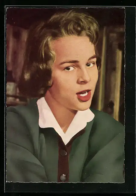 AK Musikerin Conny Froboess seitlich in die Kamera blickend