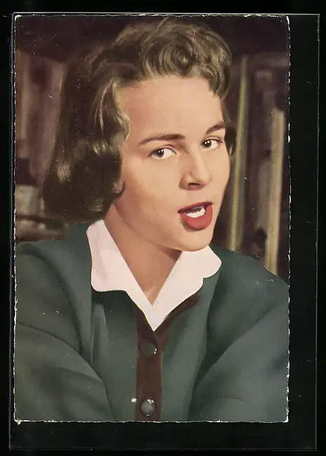AK Musikerin Conny Froboess seitlich in die Kamera blickend