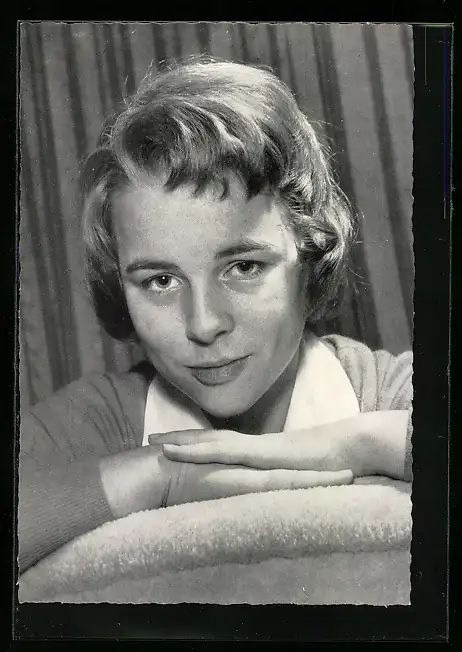 AK Musikerin Conny Froboess über Sofalehne schauend
