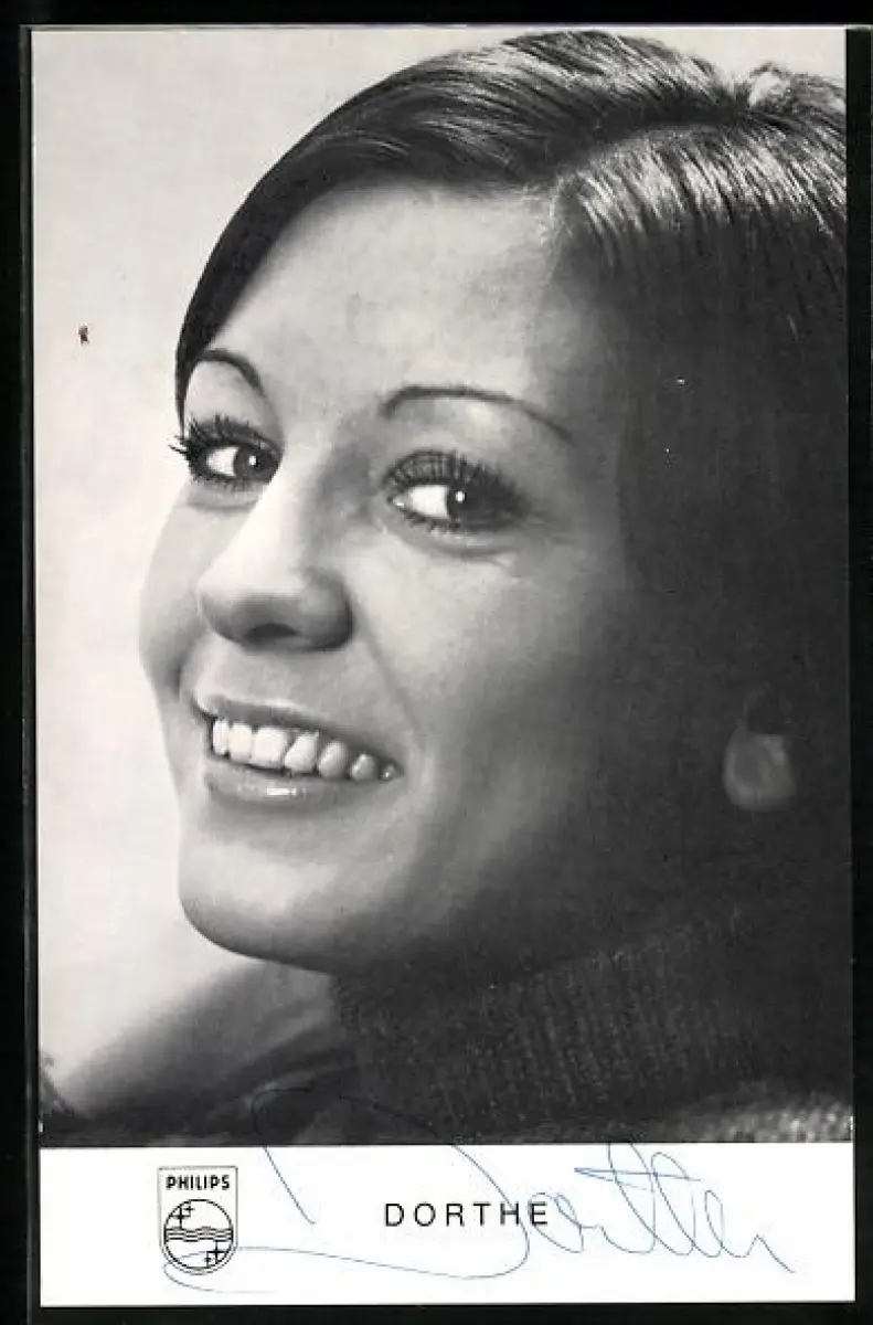 AK Musikerin Dorthe lächelnd im Porträt, Autograph