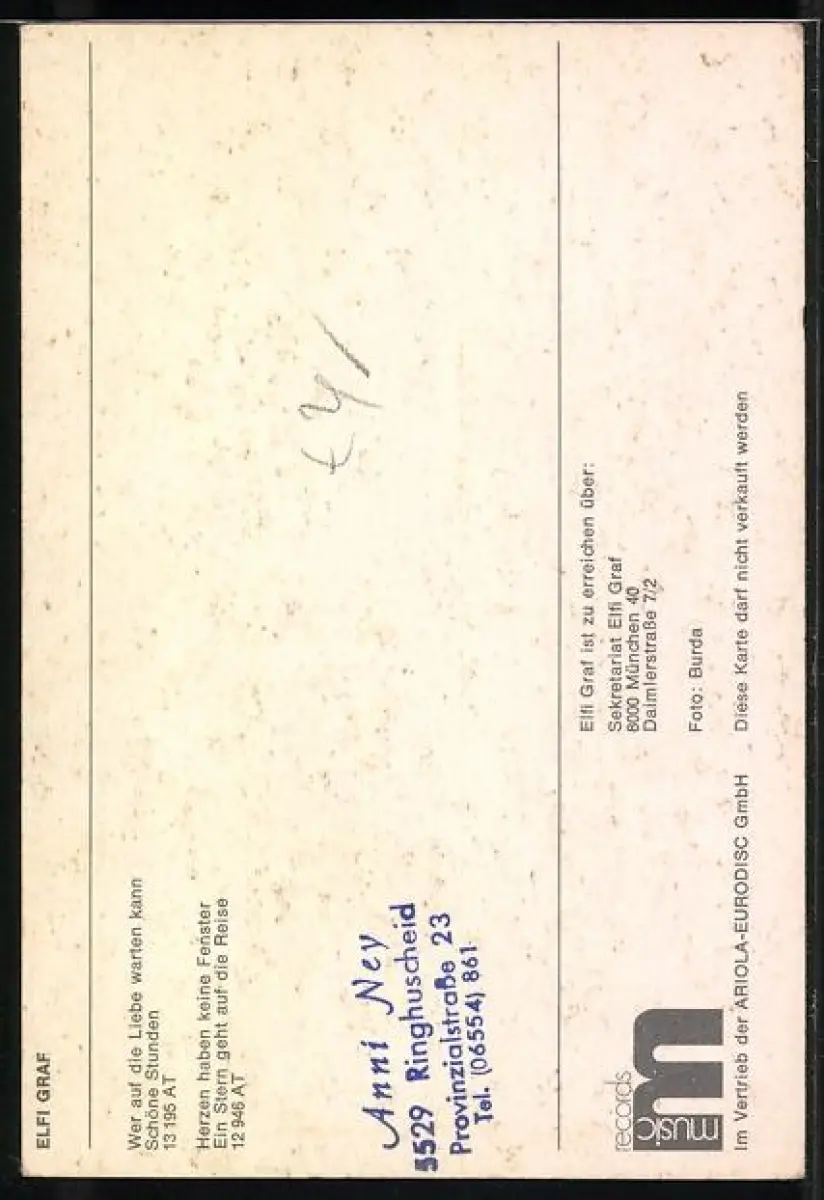 AK Musikerin Elfi Graf mit langen Haaren, Autograph