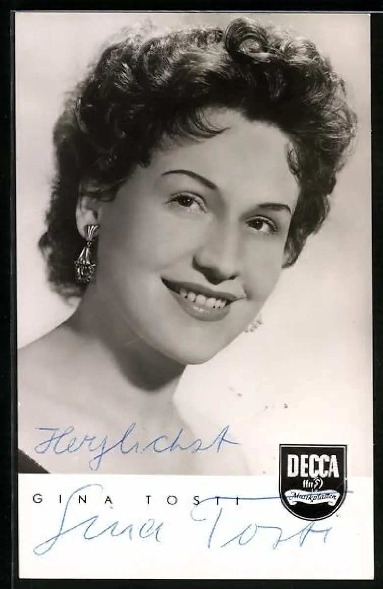AK Musikerin Gina Tosti lächelnd im Porträt, Autograph
