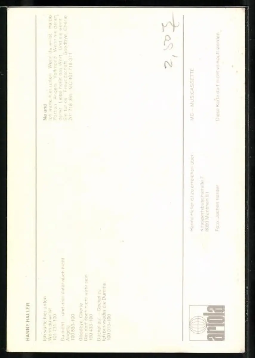 AK Musikerin Hanne Haller an Wand angelehnt sitzend, Autograph