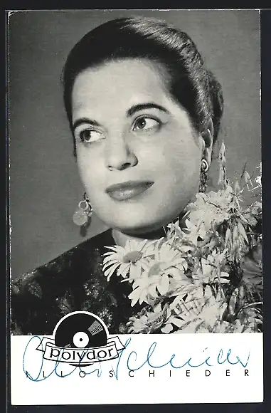 AK Musikerin Illo Schieder mit Blumenstrauss, mit Autograph