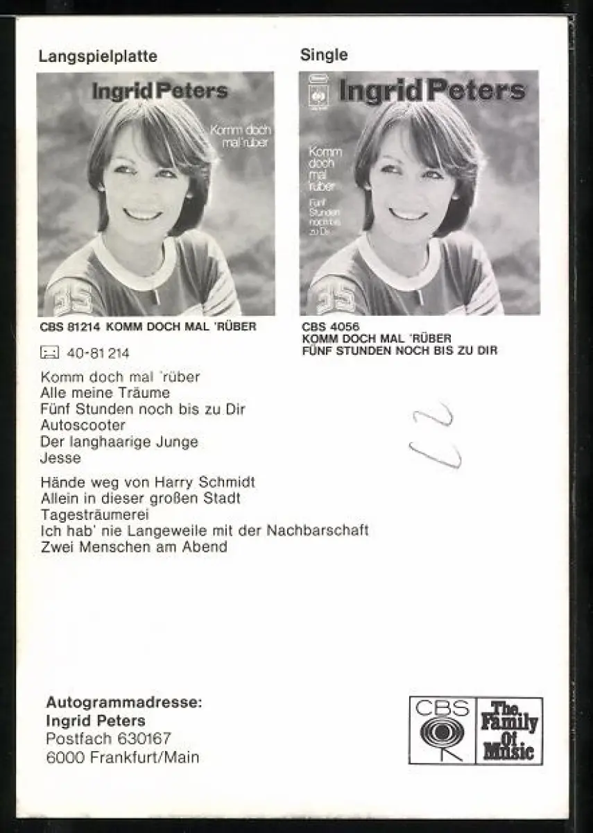 AK Musikerin Ingrid Peters lächelnd im Porträt, Autograph