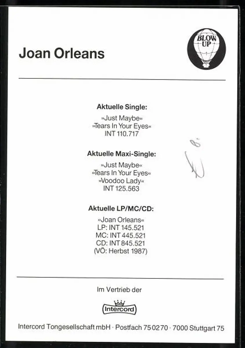 AK Musikerin Joan Orleans singend im Porträt, Autograph