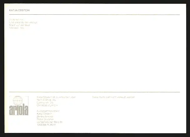 AK Musikerin Katja Ebstein mit leichtem Lächeln in Nahaufnahme, mit Autograph