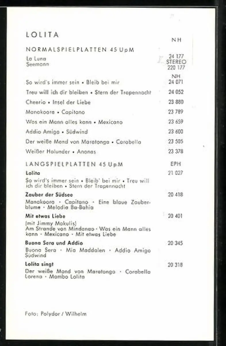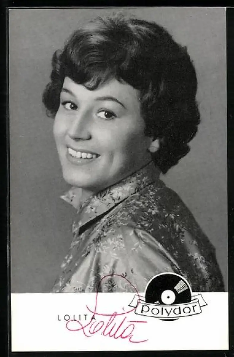 AK Musikerin Lolita lächelnd im Porträt, Autograph
