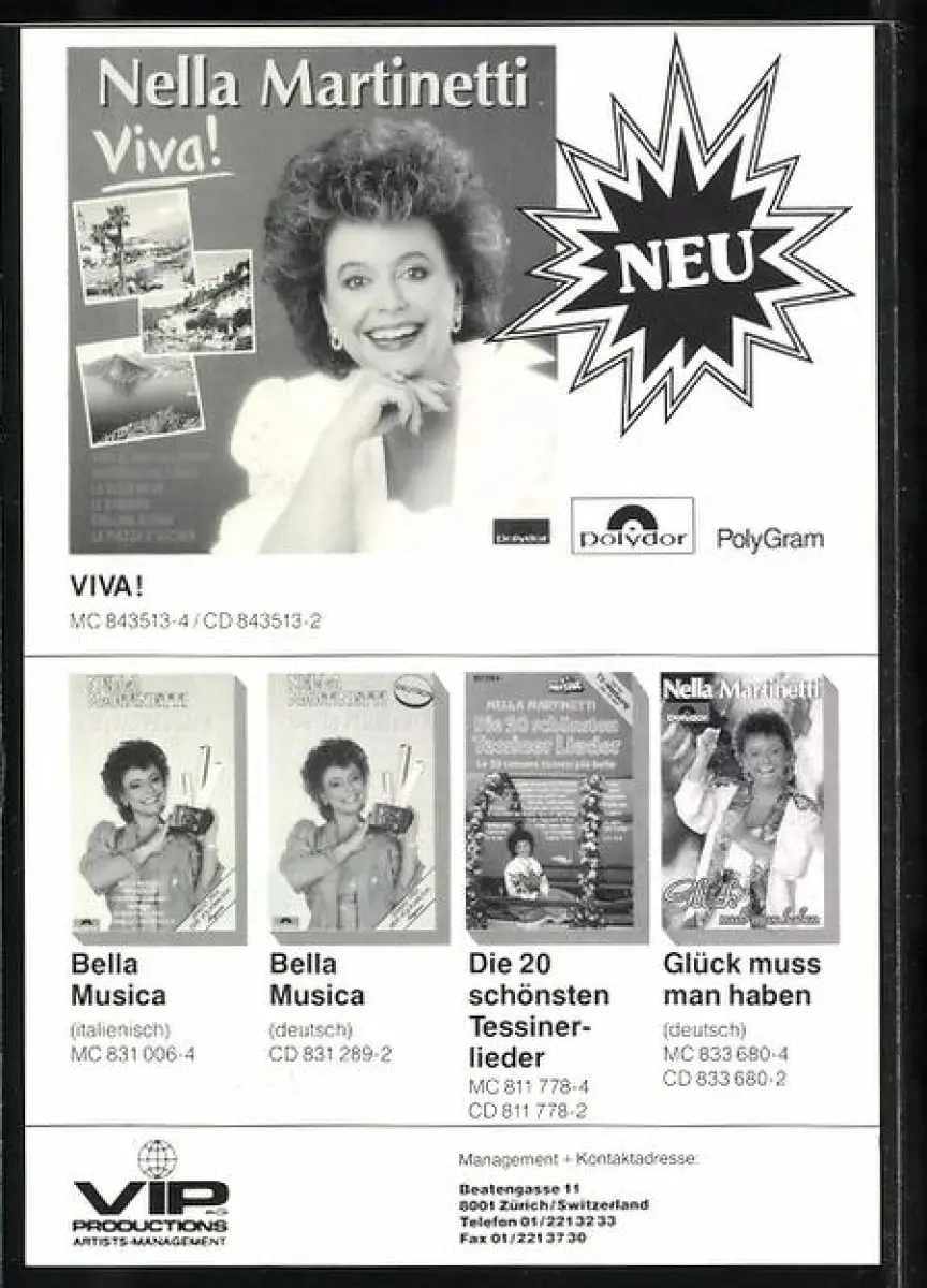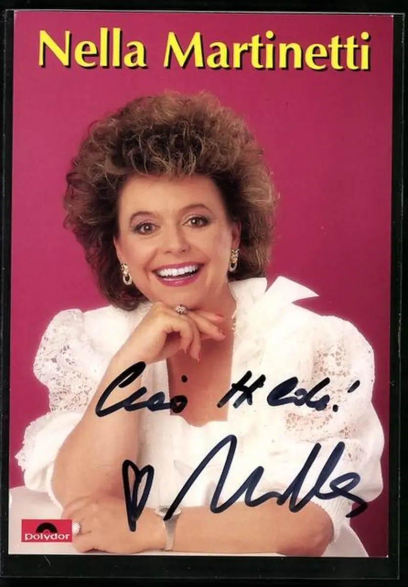 AK Musikerin Nella Martinetti in weisser Bluse, Autograph