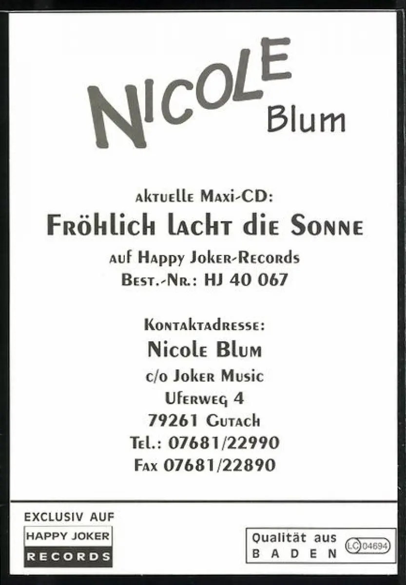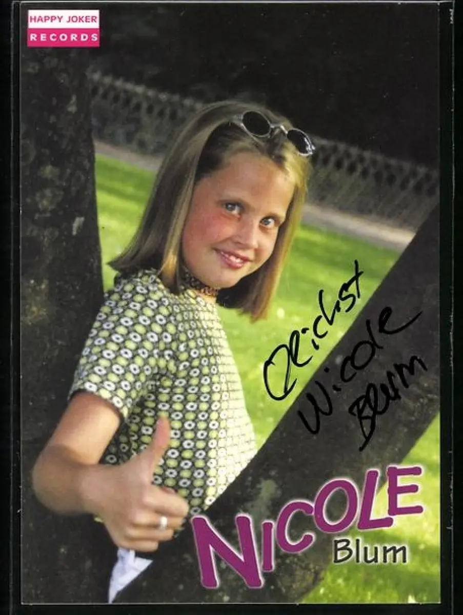 AK Musikerin Nicole Blum auf einer Wiese, Autograph