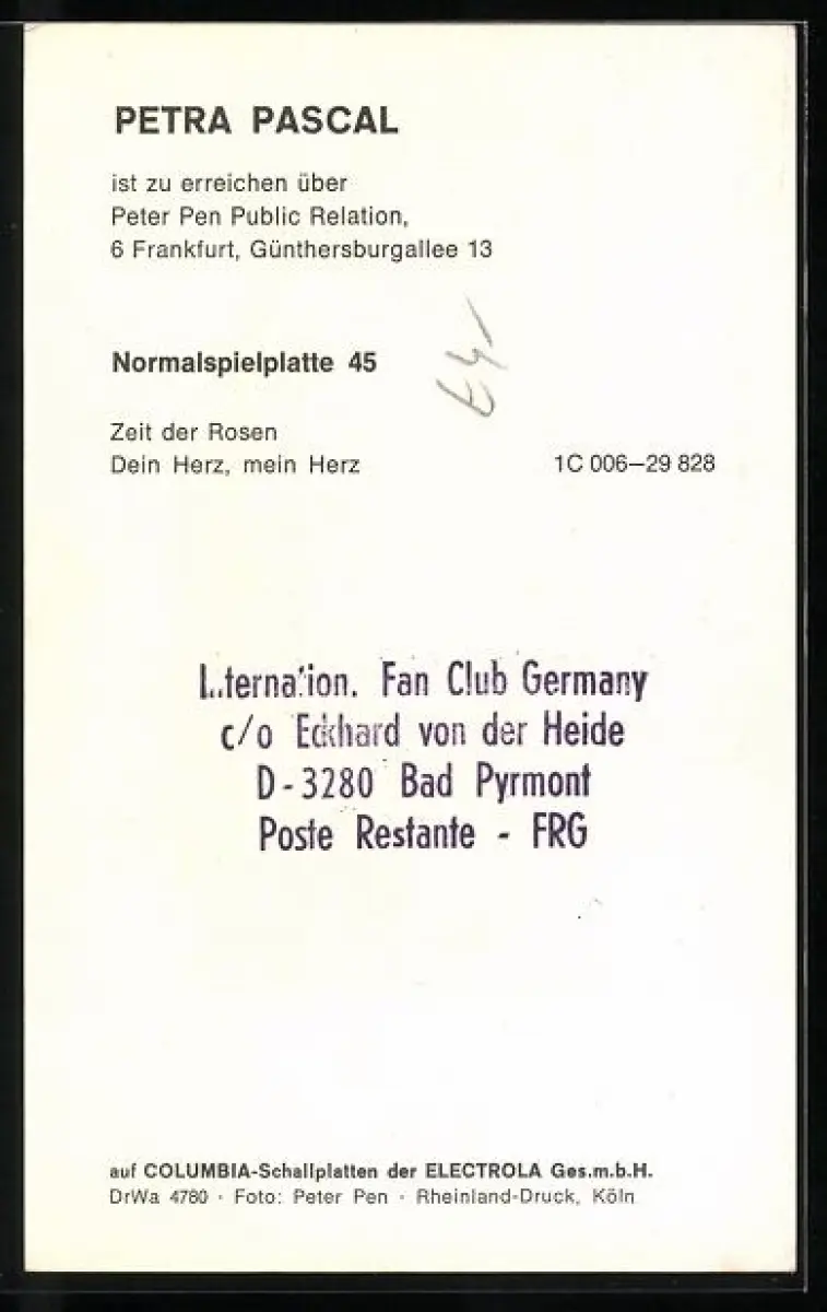 AK Musikerin Petra Pascal mit langen Haaren lächelnd, Autograph