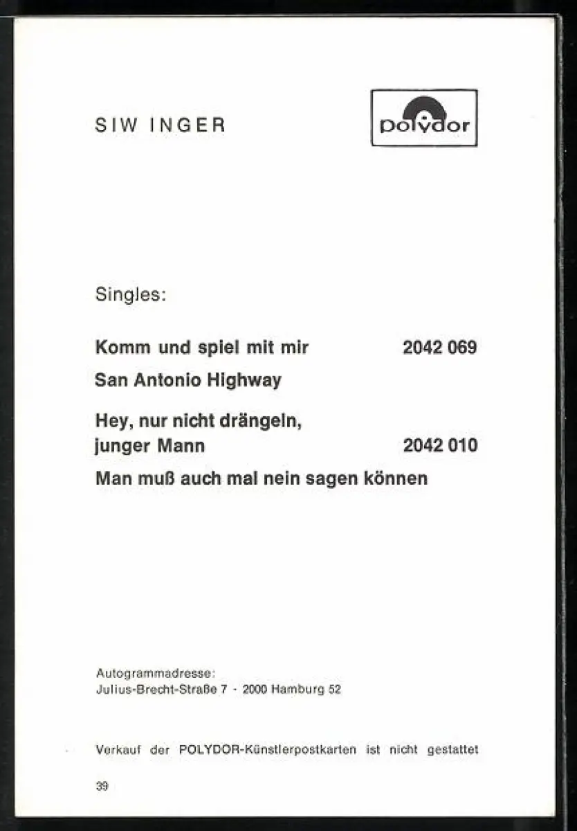 AK Musikerin Siw Inger in roter Bluse, Autograph