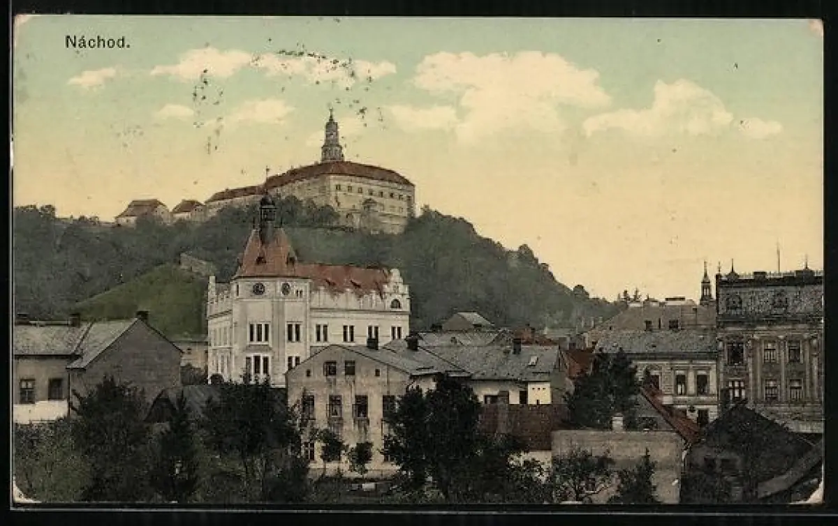 AK Nachod, Teilansicht mit Schloss