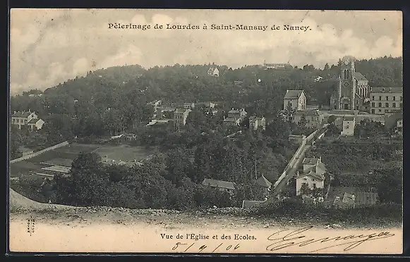 AK Nancy, Pèlerinage de Lourdes à Saint-Mansuy, vue de l`église et des écoles