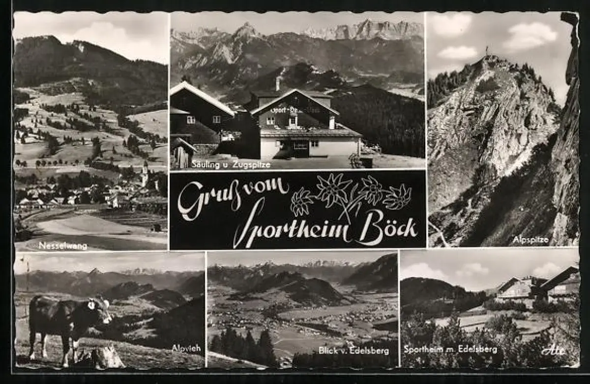 AK Nesselwang im Allgäu, Sportheim Böck, Alpspitze, Blick vom Edelsberg
