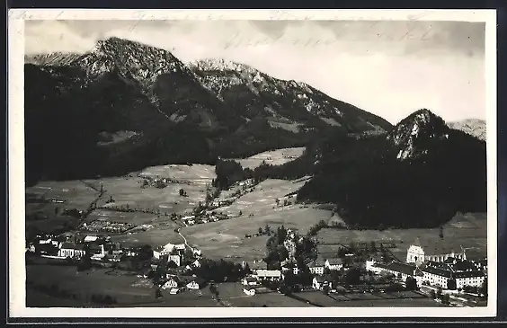 AK Neuberg a. d. Mürz, Gesamtansicht mit Bergpanorama aus der Vogelschau