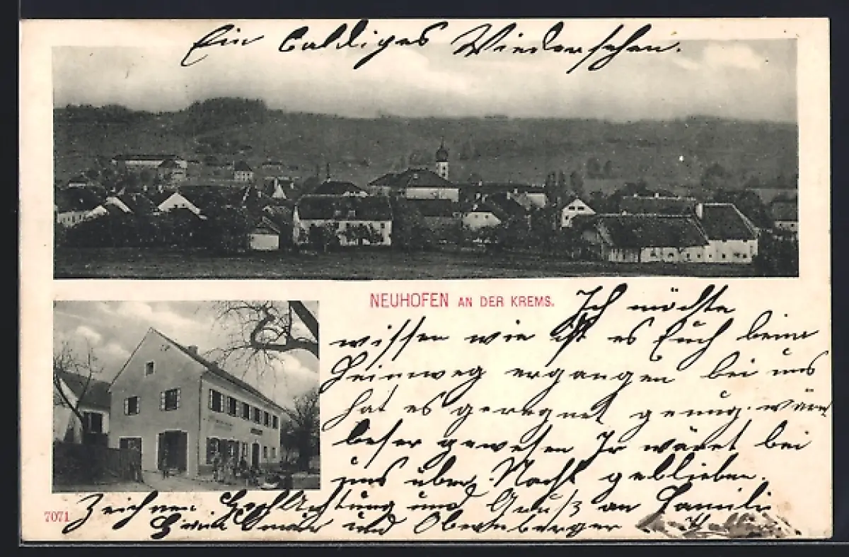 AK Neuhofen an der Krems, Gasthaus im Ort, Ortspanorama