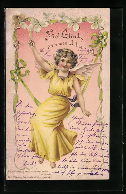 AK Neujahrsengel hebt prostend das Sektglas, Neujahrwunsch