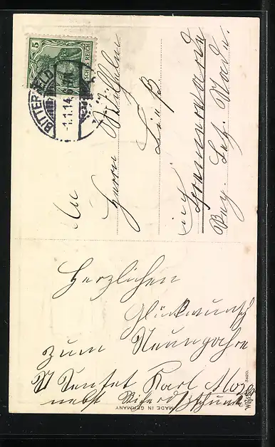 alte Ansichtskarte, gelaufen 1914, Stempelspur, guter Zustand