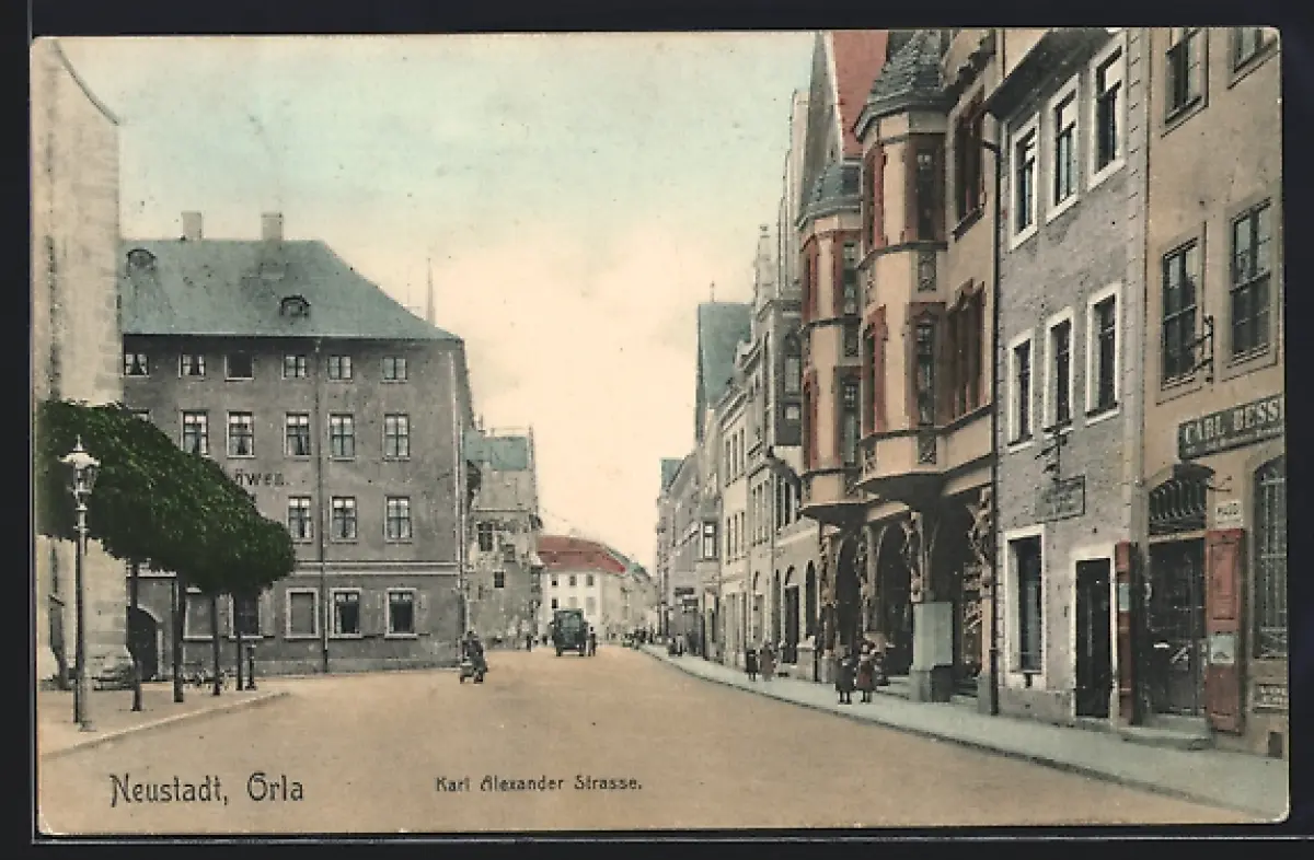 AK Neustadt /Orla, Passanten in der Karl Alexander Strasse