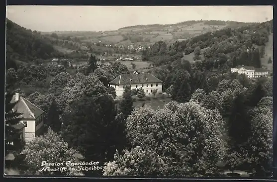 AK Neustift bei Scheibbs, Pension Egerländer umgeben von Bäumen
