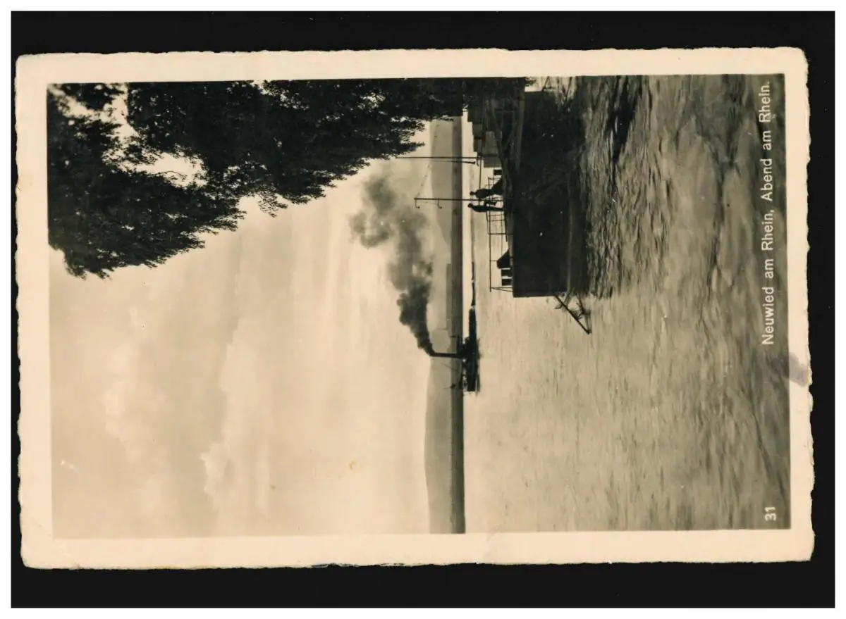 AK Neuwied am Rhein, navire à vapeur, soirée am Rhin, Feldpost, Neuwied 9.8.1940