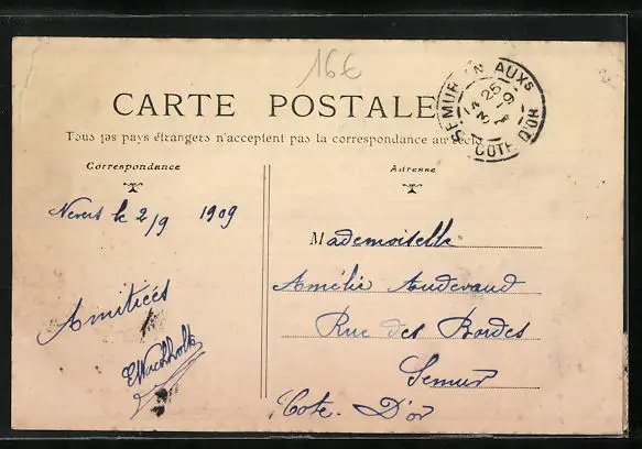 alte Ansichtskarte, gelaufen 1909, Eckknicke oben, guter Zustand