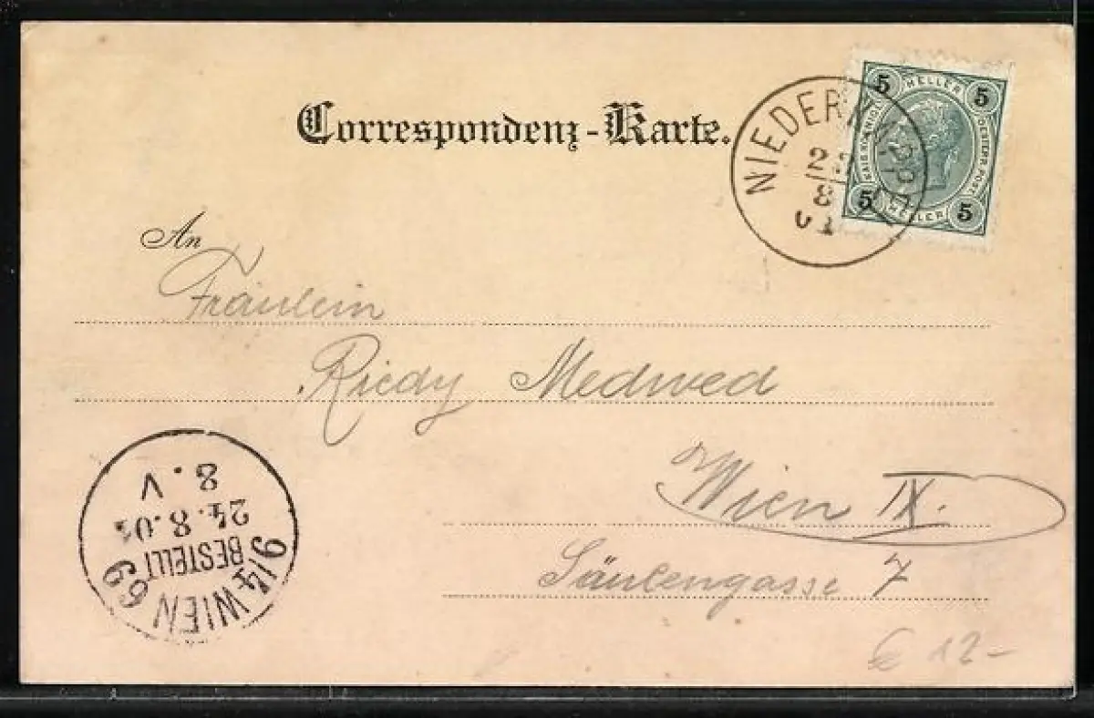 alte Ansichtskarte, gelaufen 1901, Stempelspur, guter Zustand