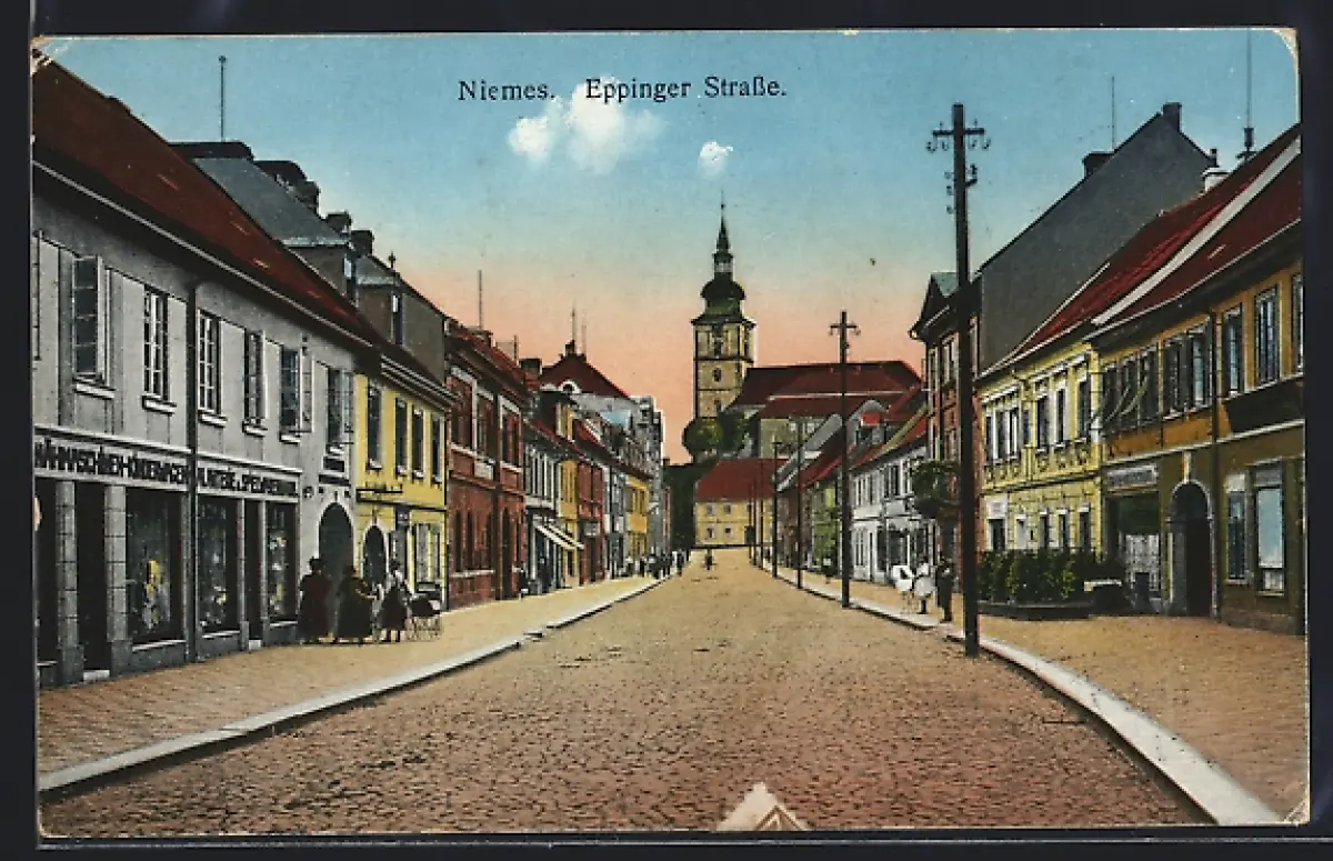 AK Niemes, Eppinger Strasse mit Blick zur Kirche