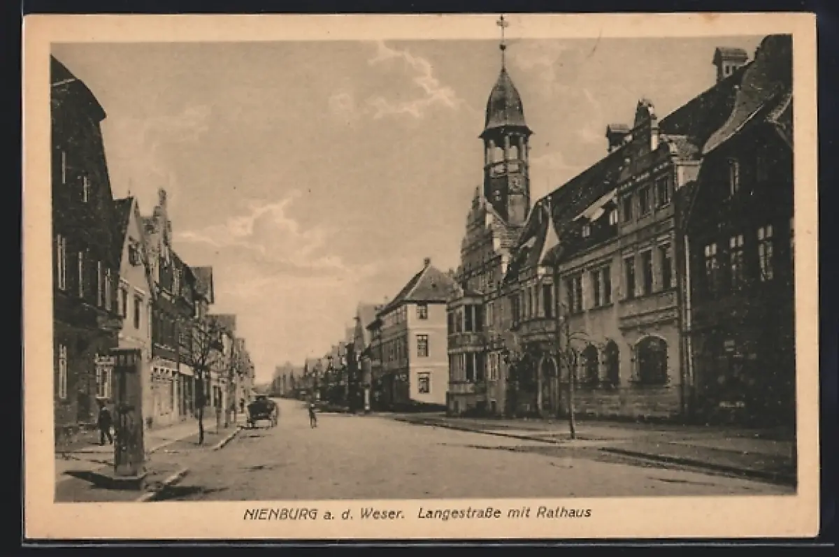AK Nienburg a. d. Weser, Lange Strasse mit Rathaus