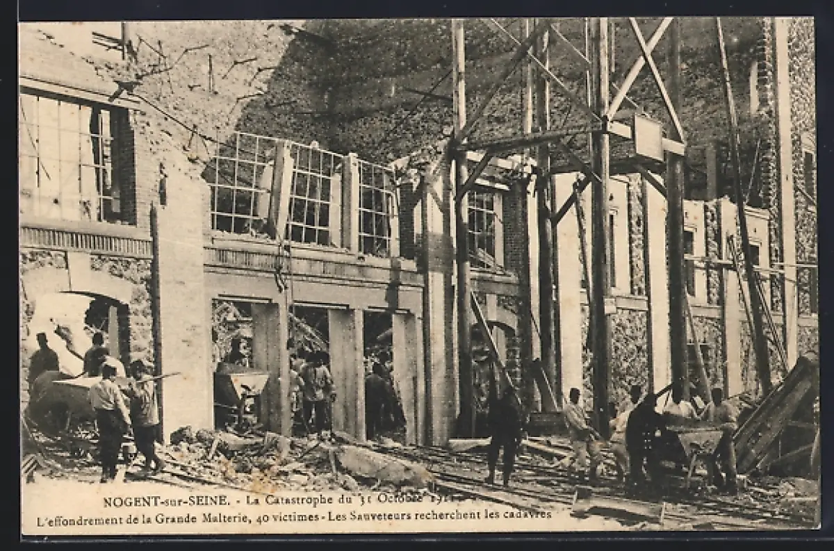 AK Nogent-sur-Seine, Le Catastrophe du 31 Octobre 1911, L`effondrement de la Grande Malterie