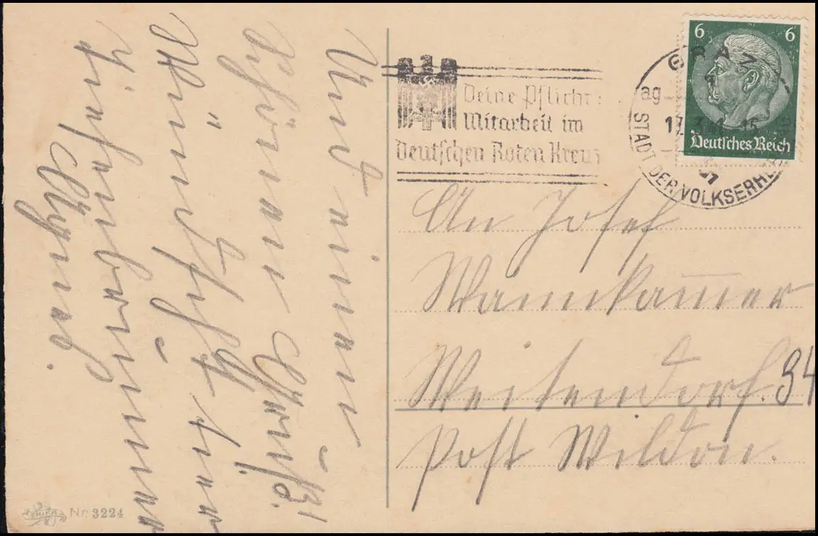AK Nomentag avec cachet publicitaire collaboration dans la Croix-Rouge allemande, GRAZ 17.3.1941