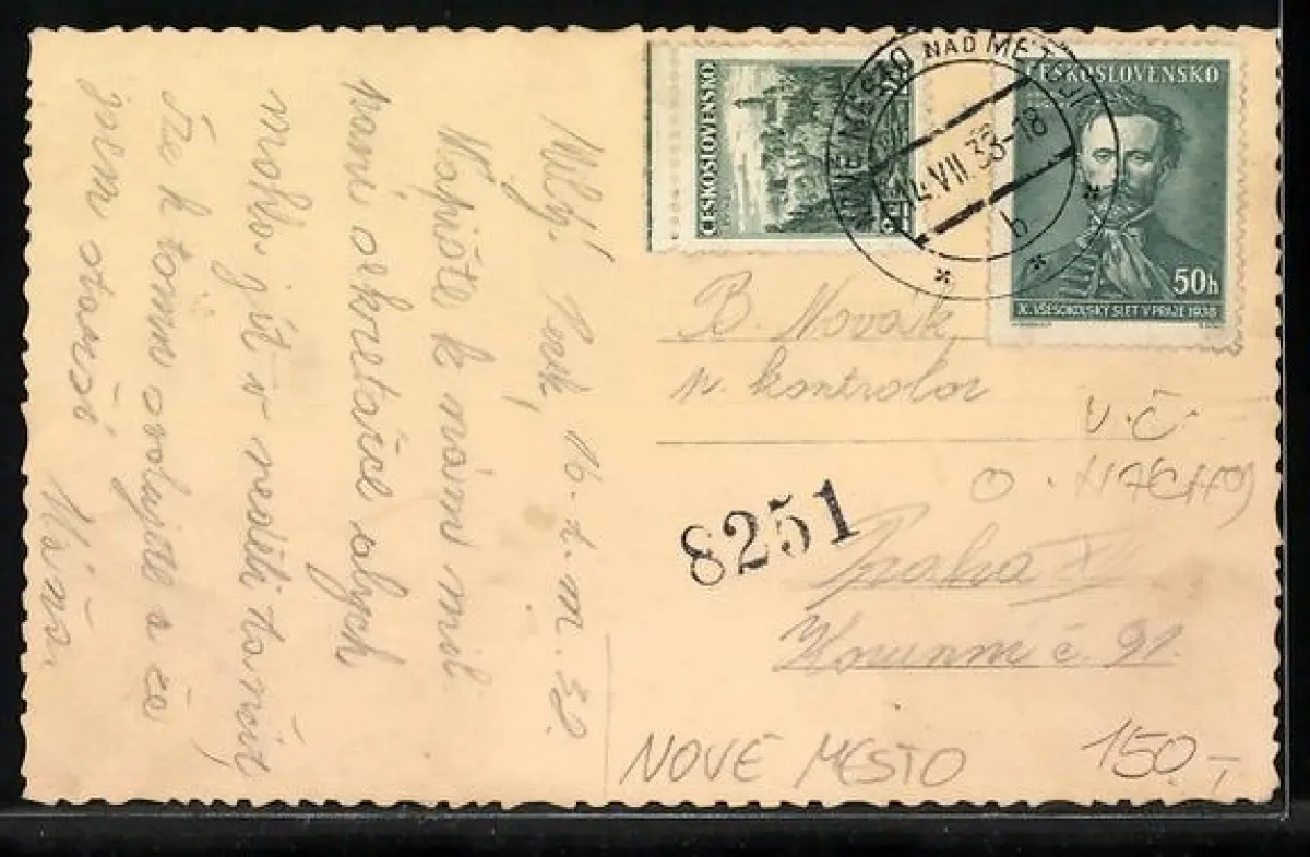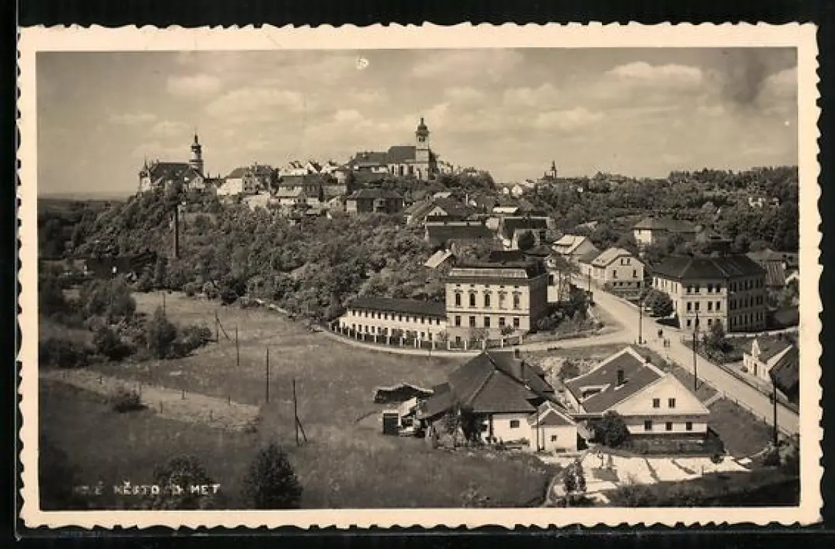 AK Nove Mesto, Panorama mit Strassenpartie