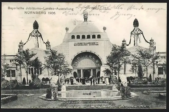 AK Nürnberg, Bayerische Jubiläums-Landesausstellung 1906, Blick zum Staatsgebäude