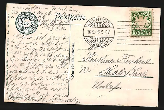 alte Ansichtskarte, gelaufen 1906, Stempelspur, guter Zustand