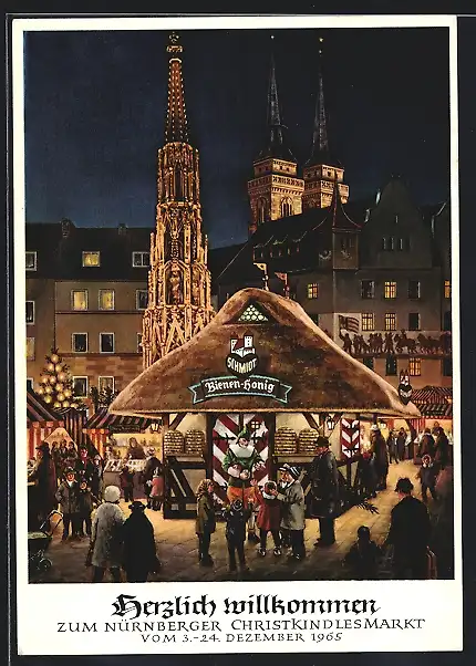 AK Nürnberg, Christkindles-Markt mit St.Sebalduskirche und Imkerei-Stand
