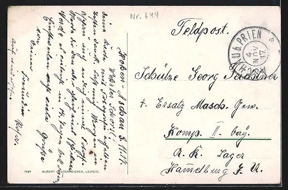 alte Ansichtskarte, gelaufen 1917, Eckknick oben re., guter Zustand