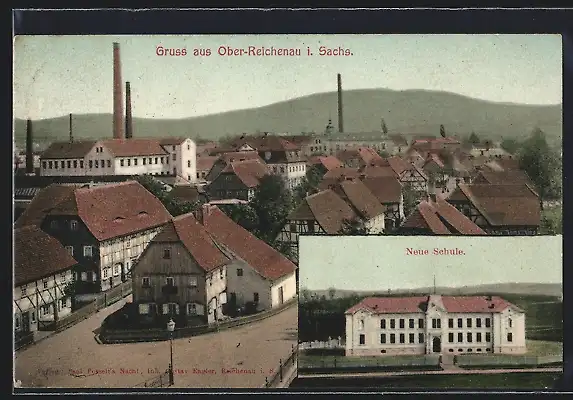 AK Ober-Reichenau, Neue Schule, Ortsansicht