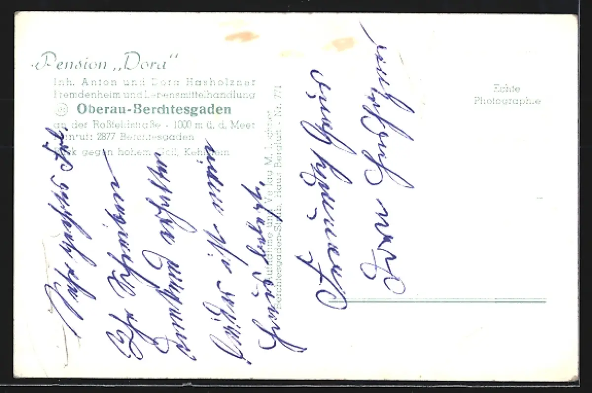 AK Oberau-Berchtesgaden, Gasthof Dora, Inh. Anton und Dora Hasholzner, Blick gegen Hohen Göll und Kehlstein