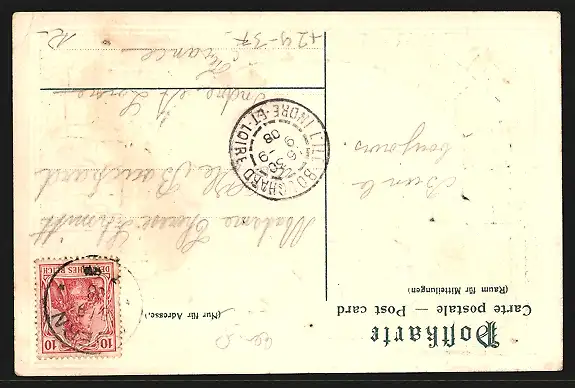 alte Ansichtskarte, gelaufen 1908, Eckknick re. oben, guter Zustand